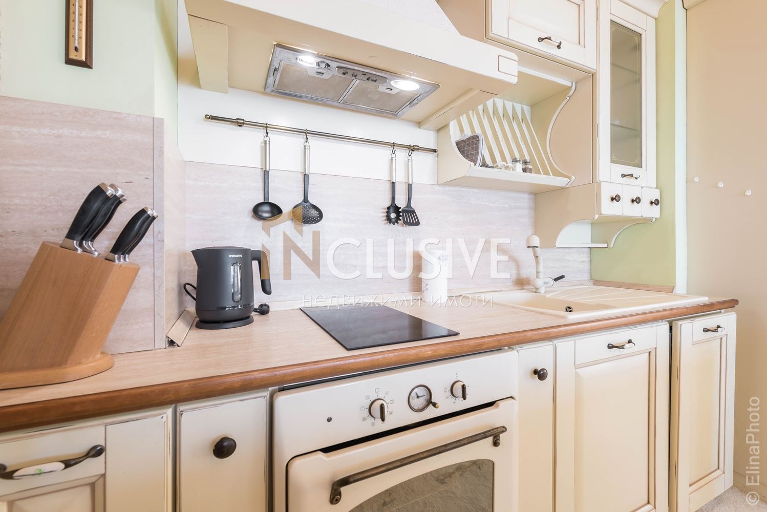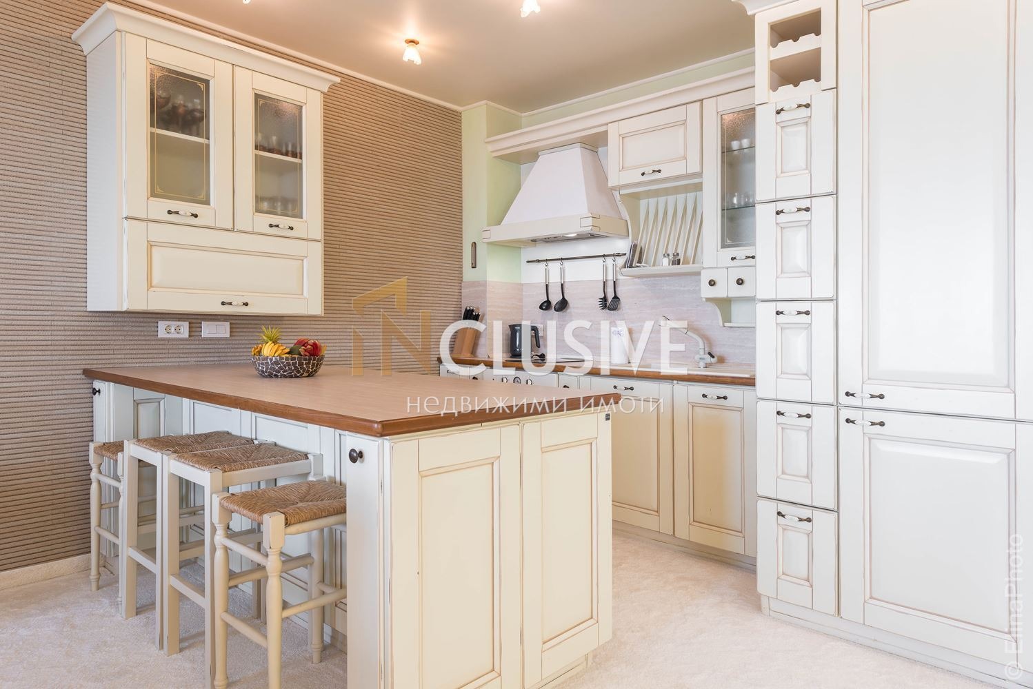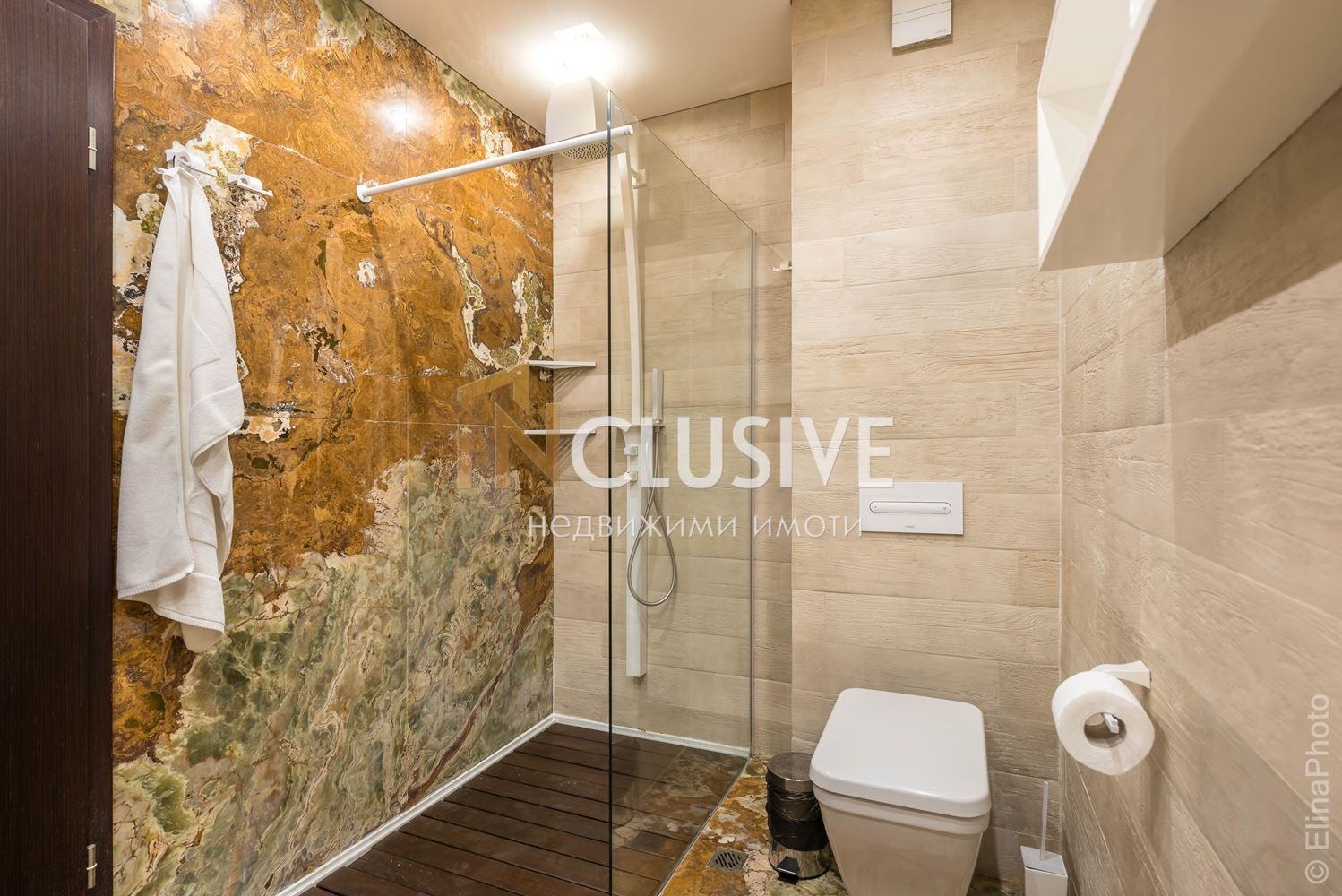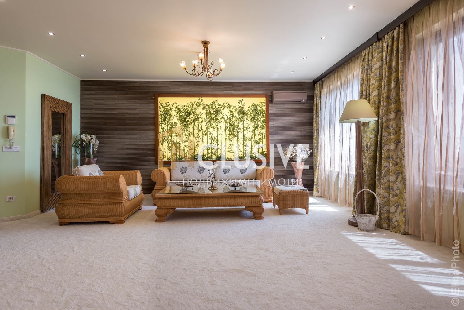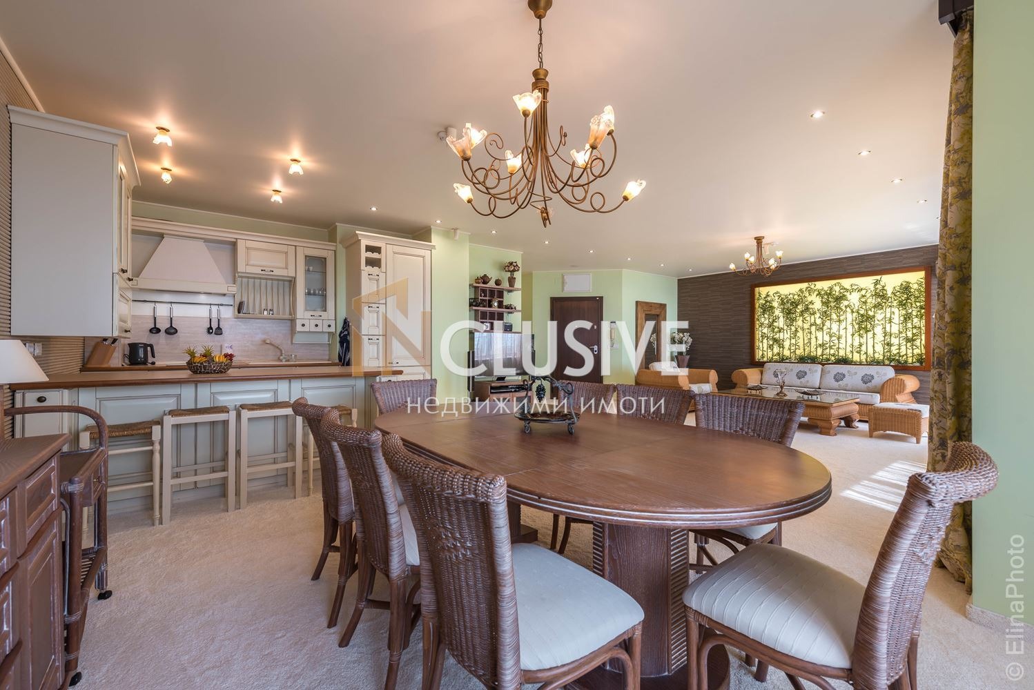 На площ от 220 кв.м са разположени: дневна с кухненски бокс и просторен хол, две спални, две санитарни помещения и многофункционална веранда. Дневната е условно разделена на няколко зони: дневна с мека мебел, кухня, кът за отдих и трапезария. От дневната се излиза на просторна веранда с