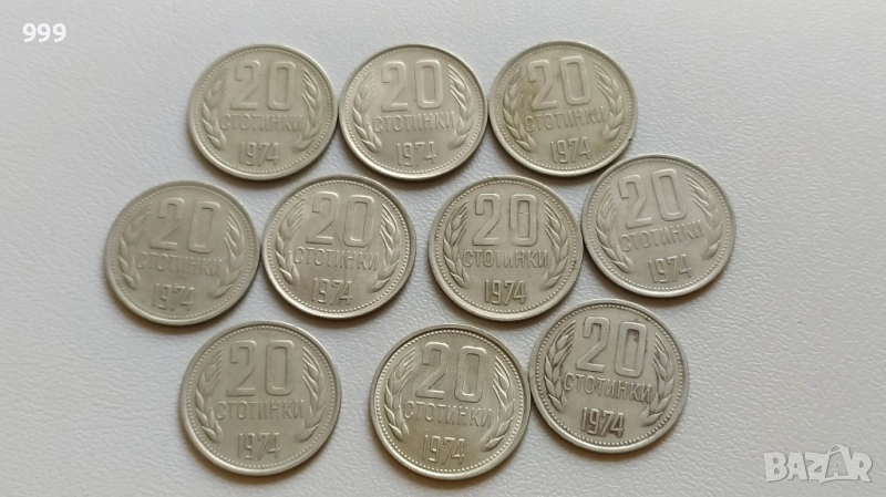 лот 1 стотинка 1974 - България 5 броя - 0,50