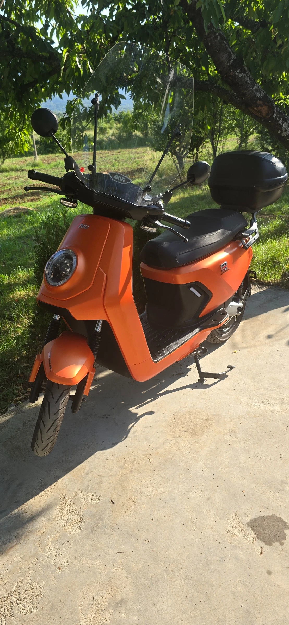 Нов внос, нови батерии, фактура и документи за регистрация в КАТ! Не разлиим от нов! NIU MQi GT EVO е електрически скутер, еквивалентен на 125cc, предлагащ максимална скорост от 100 км/ч и пробег до 70 км с едно зареждане. Той разполага с мощен 5kW мотор, две батерии с общ капацитет 52Ah, 14-инчови колела и редица смарт функции. Ето по-подробна информация за NIU MQi GT EVO: Производителност и характеристики: Еквивалент на 125cc: Проектиран да се конкурира с конвенционалните 125cc скутери. Мощен мотор: 5kW мотор осигурява бързо ускорение и висока максимална скорост. Две батерии: 2 x 72V 26Ah батерии с общ капацитет от 52Ah, осигуряващи достатъчен пробег. Дълъг пробег: Достига до 70 км с едно зареждане, в зависимост от условията на каране. Максимална скорост: До 100 км/ч, в зависимост от режима на каране. Три режима на каране: Еко, динамичен и спортен, за оптимизиране на производителността и пробега. Големи колела: 14-инчови колела за по-добра стабилност и комфорт. Двойни дискови спирачки: Осигуряват ефективно и надеждно спиране. Интелигентни функции: Ключово безконтактно стартиране, персонализирано TFT табло, круиз контрол и мониторинг на налягането в гумите. Свързаност: Вградена SIM карта за свързаност с приложението NIU, осигуряващо достъп до информация за сигурността, местоположението и състоянието на батерията. LED осветление: Преден фар с LED проектор и халогенна светлина, както и 360-градусово осветление за по-добра видимост. Допълнителна информация: Тегло: 128 кг (с батериите). Максимално натоварване: 275 кг. Размери: Дължина: 1949 мм, височина на седалката: 816 мм. Забележки: За да управлявате този скутер, е необходимо минимум категория А1 (мотоциклет). В заключение, NIU MQi GT EVO е модерен електрически скутер, който предлага впечатляваща производителност, дълъг пробег и редица смарт функции, подходящ за градска мобилност
