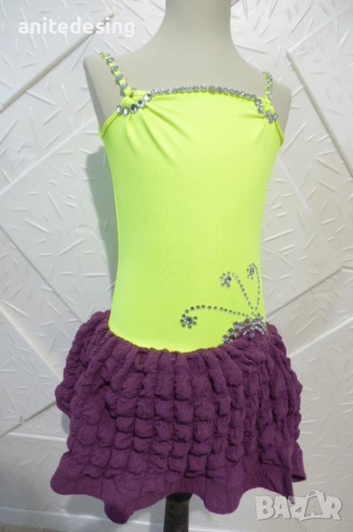 Рокля за спортни танци в електрик и лилаво, изработена от полиамид и полиестер.