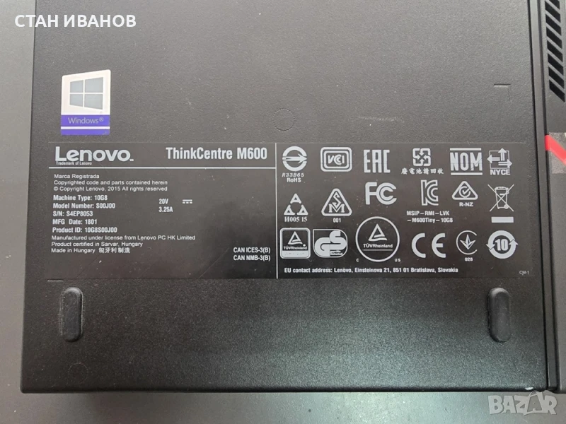 Компютър Lenovo ThinkCentre M600 Tiny Desktop → Обява 50661891