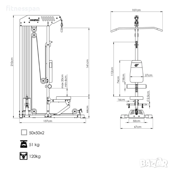 Продава се: Лат пулдаун и скрипец със свободни тежести MS-W101 2.0 – за гръб, ръце и рамене
