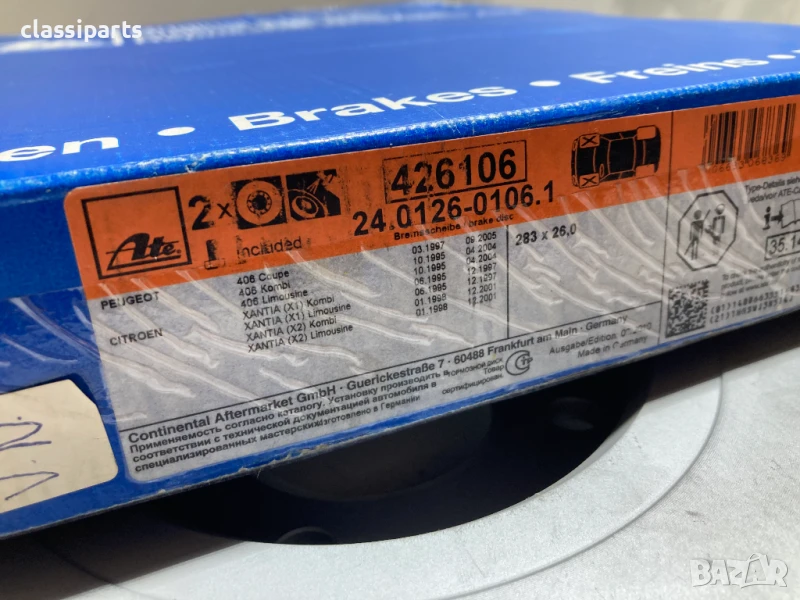 Спирачни дискове ATE за Ситроен Ксантиа и Пежо 406 / CITROEN Xantia, PEUGEOT 406