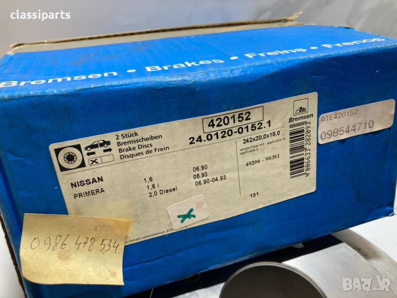 Спирачни дискове ATE за Нисан Примера / NISSAN Primera (P10)