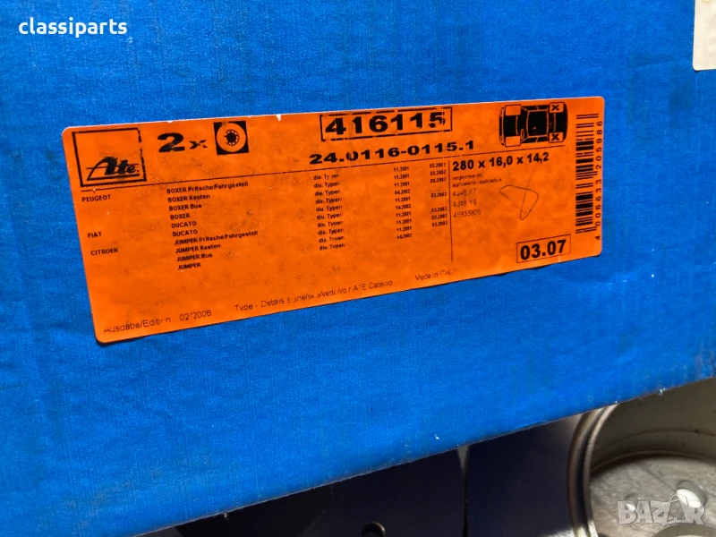 Спирачни дискове ATE за Ситроен Джъмпер, Фиат Дукато и Пежо Боксер