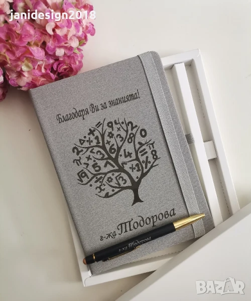 Подаръчен комплект за учител по математика гравирани тефтер и химикал в кутия → Обява 50662727