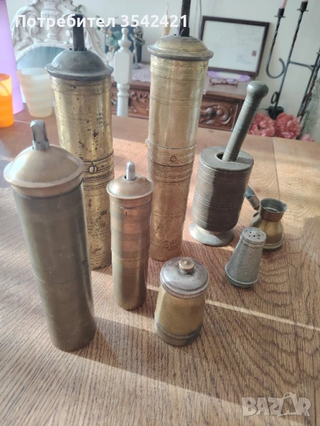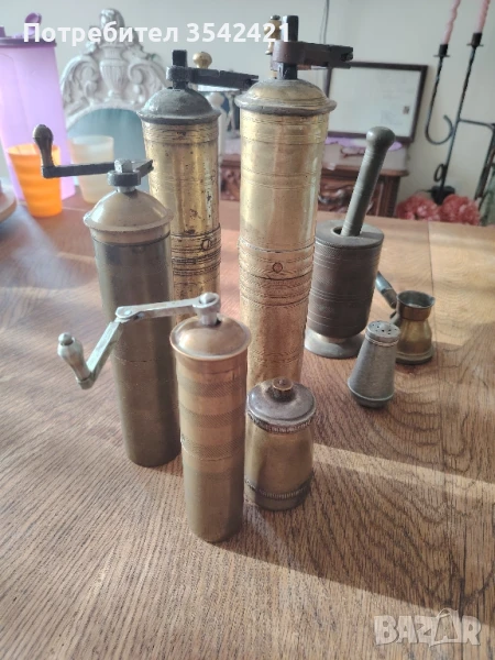 Продава се общо. Пет мелнички, уникално хаванче с капак, солничка и джезвенце.