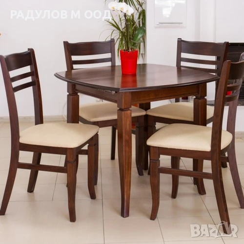 Изработена е от качествена букова дървесина и МДФ плот с естествен фурнир.