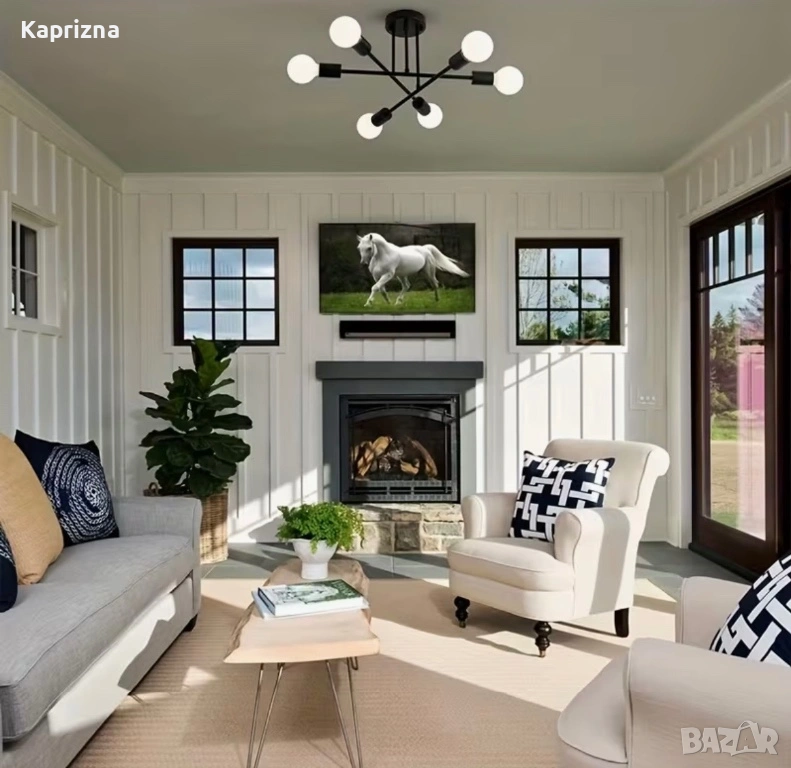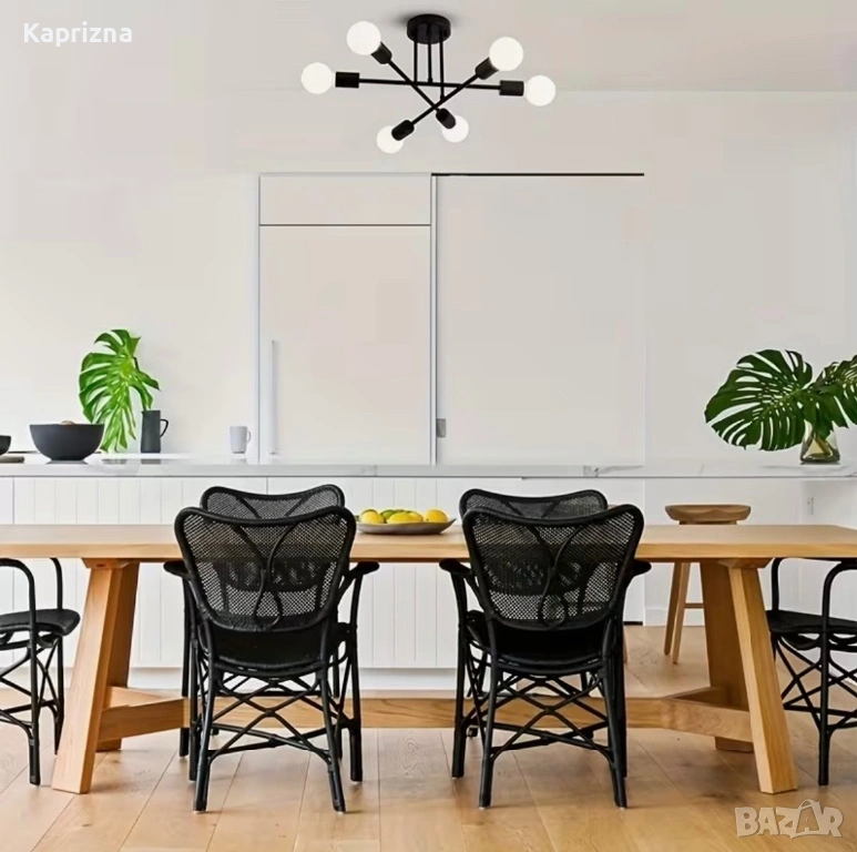 Добавете модерен и изискан акцент към дома си с полилей за елегантен таван с 6 източника на светлина, идеален за хол, трапезария, спалня или офис. Изработен от издръжливо желязо, този модел съчетава модерен дизайн с функционалност, предлагайки оптимално разпределение на светлината и съвременен стил.