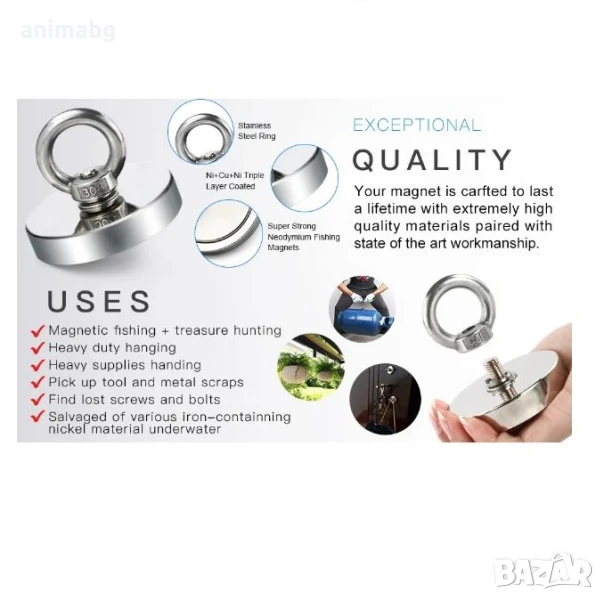 ▲Многофункционален - уникален дизайн с вдлъбнати отвори и болтове с уши е много подходящ за риболов на всякакви желязо-никелови материали под вода. Това е добра идея за риболов с магнит, повдигане, окачване и рециклиране. Потърсете болтове с уши, винтове, куки, крепежни елементи и други предмети в склада, гаража или двора си и се забавлявайте.