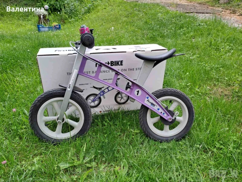 колело интуитивно и без страх. FirstBike се счита за най-безопасното колело без педали:Високотехнологичната рамка от композитен материал не се драска, не се чупи, не се надува и не може да ръждяса за разлика от металните или дървените рамки. Направена е от изключително лек, здрав и в същото време гъвкав материал.За разлика от стандартната V-образна задна спирачка, уникалната барабанна спирачка е безопасна дори и за малките пръсти.Регулируемата ръчна спирачка SafetyStop осигурява много леко и плавно спиране, а силата на натиска може да се нагласи според вашето дете.Ограничителят на кормилото не позволява пълно завъртане, което спомага за запазване на посоката. Така детето завива плавно и най-важното е, че се избягват лоши падания.Седалката има формата на „седло“, което осигурява максимален комфорт и стабилност. Тя не позволява на детето да се „подхлъзне“ напред, когато се спуска надолу.Калниците предпазват от мръсотия и камъчета.Светлоотразителните стикери дават по-добра видимост в условия на слаба осветеност.Няма никакви остри режещи ръбове или стърчащи винтове.Дръжките на кормилото са сигурни, не се хлъзгат и дават максимален контрол на детето при каране.Основните лагери на колелата са капсуловани и защитени от затлачване с пясък, мръсотия или ситни камъчета. Това осигурява плавното им въртене и дългосрочна експлоатация без нужда от специална поддръжка или подмяна.Лесно регулиране на височината на седалката посредством удобна ръкохватка, без нужда от каквито и да е инструменти. Стандартната височина на седалката е в диапазон: 34.5см – 44.5см, но с помощта на допълнителния комплект за понижаване Lowkit (закупува се отделно) може да се свали до 30.5см, което позволя колелото за баланс да се използва от още по-ранна възраст (от 22 месеца).Тегло: 3,9кг