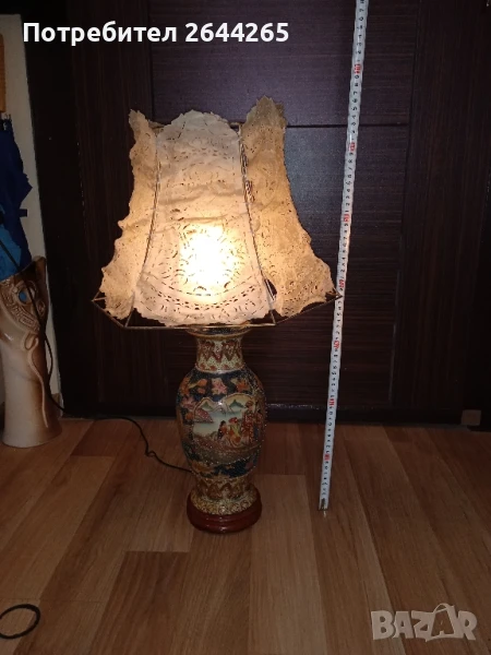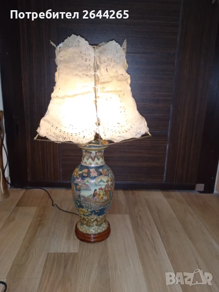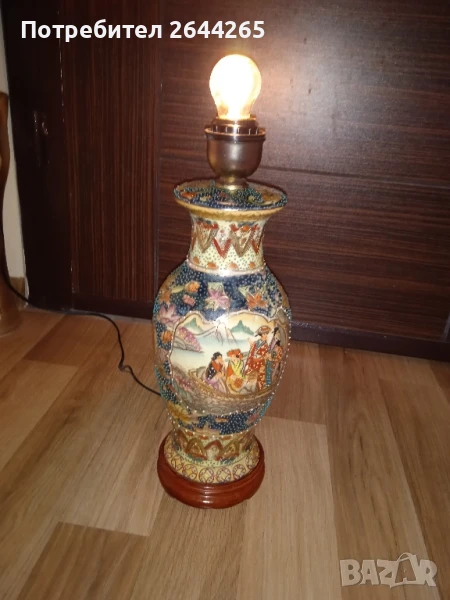Уникална Сатсума японска порцеланова ваза ,ръчно рисувана, лампа от края на 19век или началото на 20 век.На почти 150години.Перфектна с дървена основа по всички правила на Сатсума от преди век.Голяма 54см .а със абажур 70см.Може да си смените абажура по ваш вкус и цвят.Много красива и стилна вещ.Акцент за вашия дом офис или хотел.Висока антикварна стойност.Реално струва над 500-700лв.Давам я за смешно ниска цена .Питайте и другите неща от снимките се продават и ги има в останалите ми няколко обяви.НЕ съм търговец.Комлексна цена от всички обяви.Вижте ги има страхотни неща.Семейни ценности.Снимките не са хубави на живо е впечатляваща и много красива.