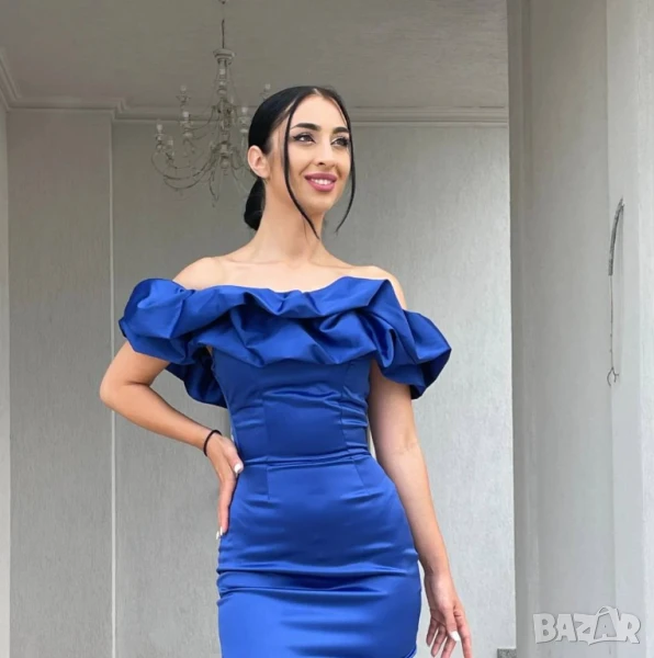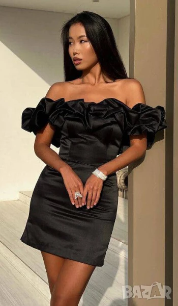 Елегантна сатенена рокля с деколте от рози в 4 цвята → Обява 50664667