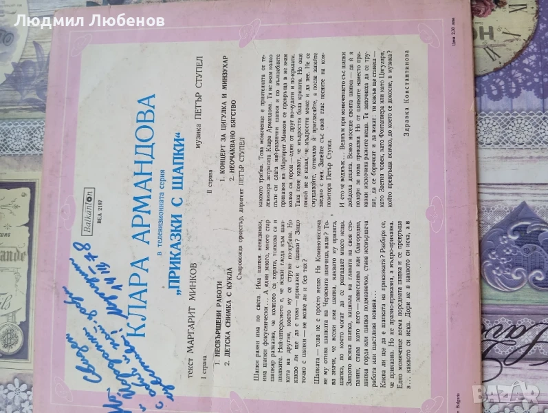Грамофонна плоча плоча Клара Армандова приказки с шапки ВЕА 2187 → Обява 50664767