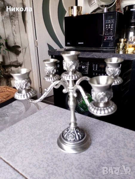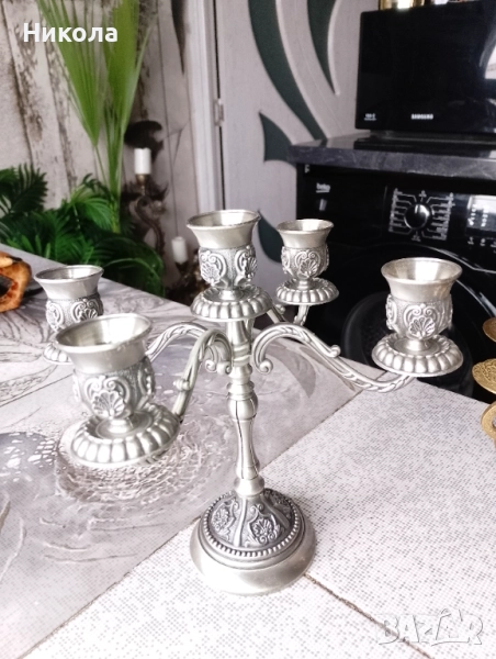 1-Свещник-метален цвят сребро-22см, 5 гнезда.-45лв