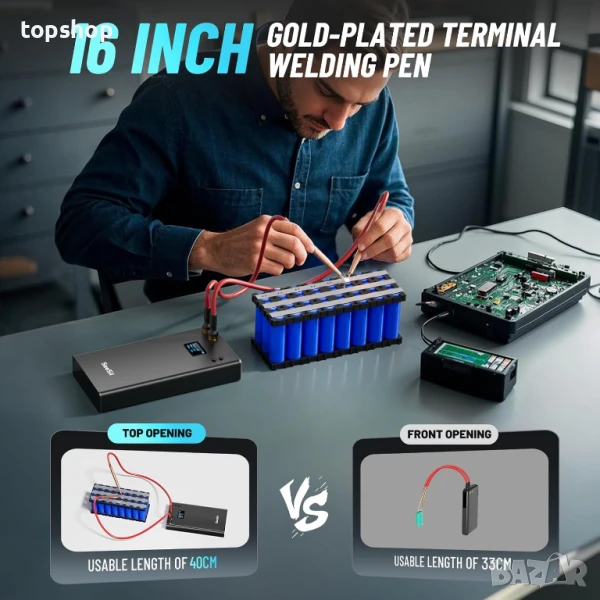 Подобрен дизайн на LCD екрана: Тази машина за точково заваряване „Направи си сам“ с батерии с цветен LCD екран; Показва оставащия заряд на батерията, времето за забавяне, температурата и нивото на предавката; Лесно следи работните условия за по-безопасно и по-ефективно точково заваряване.