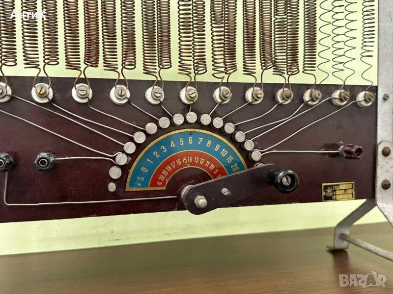 Стар учебен уред от кабинета по Физика. Реостат стъпален. Производство на УЧТЕХПРОМ 1961 год. Без липси! Състояние по снимките.