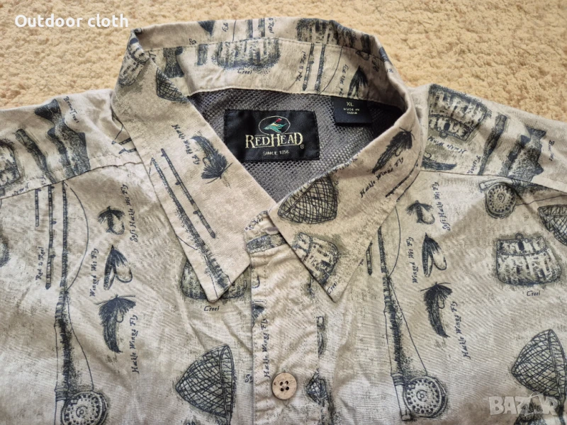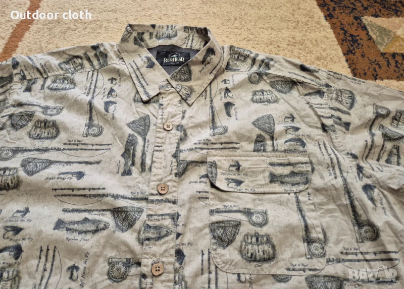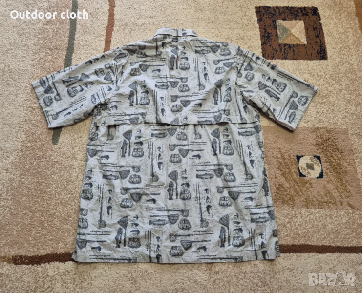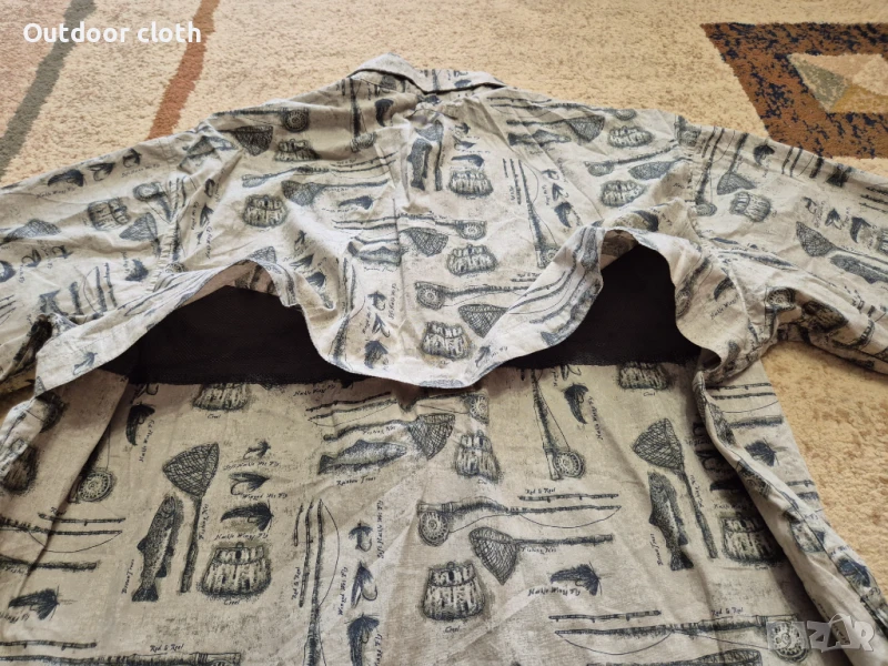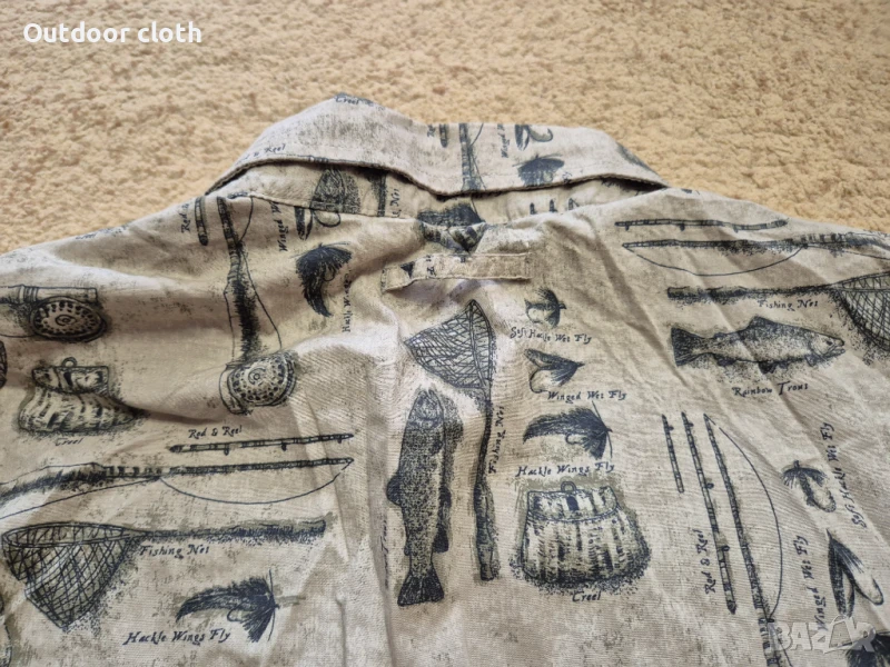 Цвета е бежов със риболовни мотиви. Размер XL-XXL, широчина под мишниците 65 см,в перфектно състояние като нова.