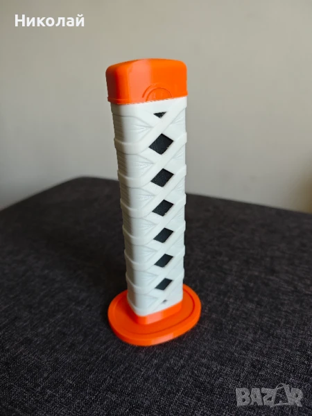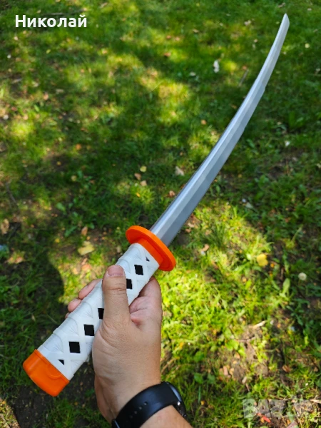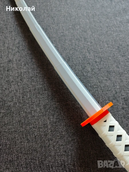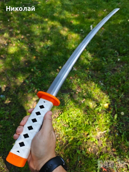 - Стилизиран дизайн: Разполага с бяла дръжка с традиционен дизайн на кръстосано увиване, акцентиран от смела оранжева цуба и капачка - идеален за аниме или самурайски визии.