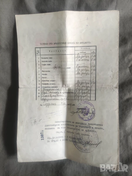 свидетелство за зрелост Девическа гимназия Бургас 1942 → Обява 50666889