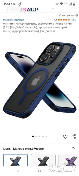 Магнитен калъф HuwaiH за iPhone 14 Pro, 15.6 фута (4.8 м), удароустойчив, прозрачен матов калъф с военна защита и защита от пръстови отпечатъци за iPhone 14 Pro, синСупер силна магнитна сила и съвместимост с всички Mag-Safe аксесоари: Съвместим с калъфа за iPhone 14 Pro, вграденият магнитен пръстен е с дизайн от 38 силни N52 магнита, образуващи интегрална решетка, удвоявайки магнитната сила и ефективно предотвратявайки случайно падане при разклащане. И работи перфектно със зарядни устройства Mag-Safe, за да осигури по-силна адсорбция и по-бързо безжично зареждане.