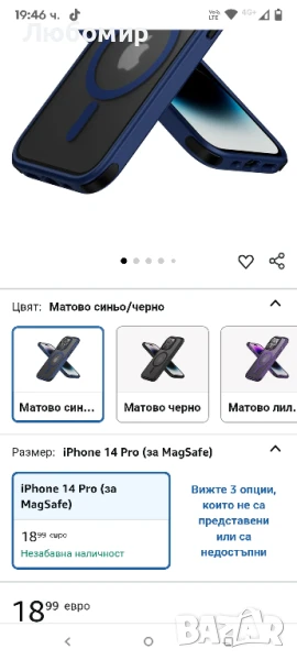 Магнитен калъф HuwaiH за iPhone 14 Pro, 15.6 фута (4.8 м), удароустойчив, прозрачен матов 38бр