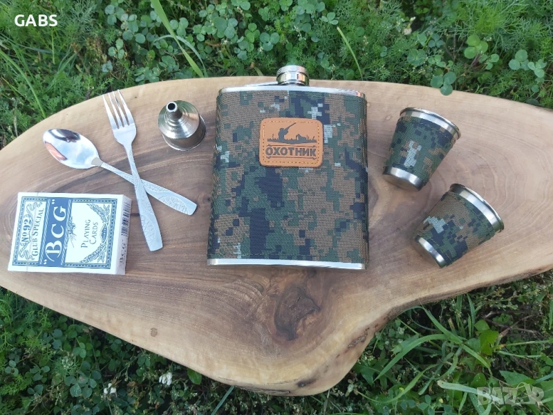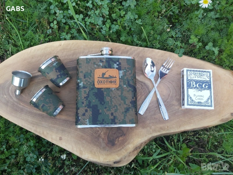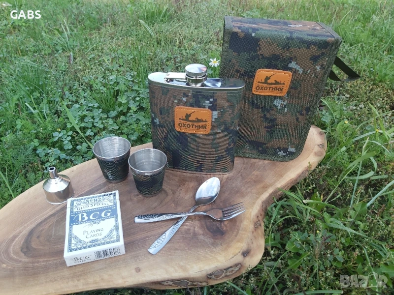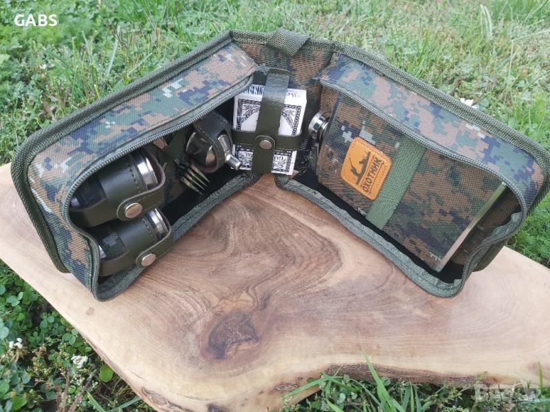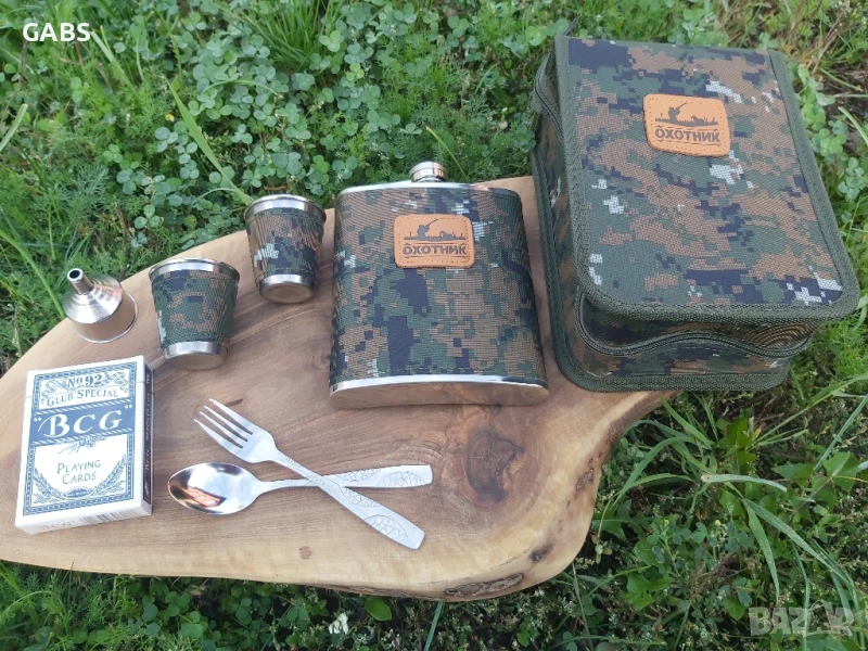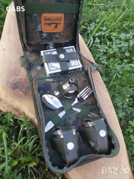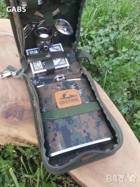 туристически комплект ОХОТНИК с чанта,чудесено попълнение към екипировката на всеки ловец и турист.Качествен и компактен,изработен в маскировъчна украска и с внимание към детайлите.