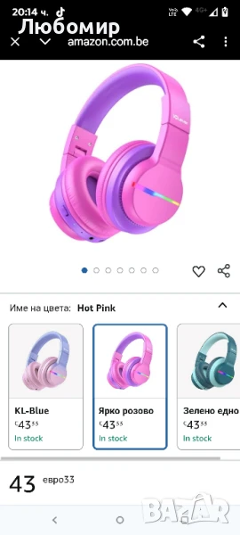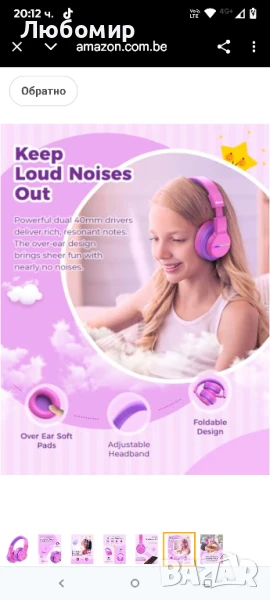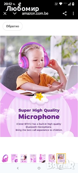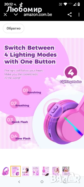 Детски слушалки с ограничение на силата на звука 74/85/94dB, 55 часа време за възпроизвеждане, Bluetooth 5.2, Вграден микрофон BTH12.Тези слушалки не само осигуряват страхотен звук, но и имат допълнителната функция да бъдат оборудвани с LED светлини с множество ефекти, режими на осветление и цветове от двете страни на слушалките. Четири режима на осветление се управляват от независим бутон, който при натискане в Bluetooth режим изключва светлините, за да се пести батерия.