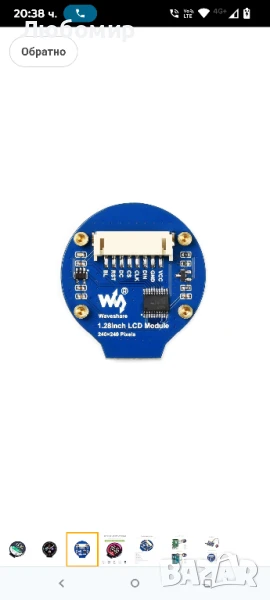 Монитор с 65K RGB цвята, IPS екран, ясен и цветен дисплейУправлява се чрез 4-проводна SPI шина, минимизира необходимите IO пинове, вграден GC9A01 драйвер, поддържа контролери като Raspberry Pi/Jetson Nano/Arduino/STM32Работно напрежение: 3.3V/5V, Размери: 40.4×37.5(mm) Φ37.5(mm)Предлага се с ресурси за разработка (примери за Raspberry Pi/Arduino/STM32)