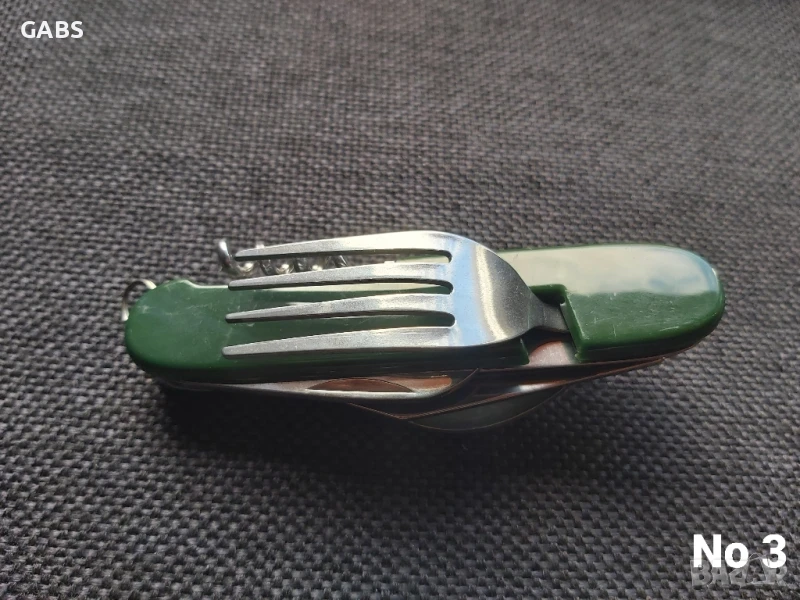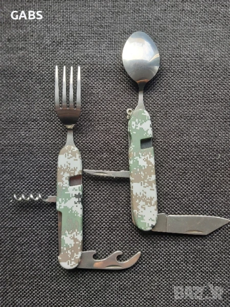 мултитул: вилица, нож, лъжица, тирбушон, острие, отварачка;