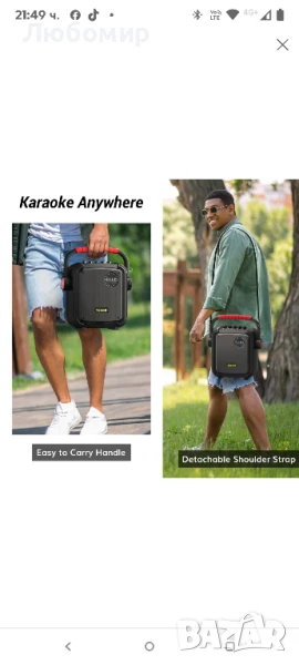 【Универсална караоке машина】Bluetooth 5.0 позволява стабилно предаване и голям обхват, 2 безжични микрофона (с AA батерии, не са включени) ви дават свободата да пеете с цялото си сърце. Поддържа TF карти с памет и USB флаш устройства и може да се използва като безжичен високоговорител с iPhone, Android смартфон, iPad, таблет и компютър. Благодарение на функцията TWS, два TONOR K7 могат да бъдат свързани заедно за стерео звук!Караоке в движение: носете музиката си навсякъде с TONOR K7! С тегло от само 2,6 кг, тази музикална кутия е лесна за носене дори на открито, благодарение на практичната си дръжка и подвижна презрамка. ИДЕАЛНА ЗА ЗАКРИТО И НА ОТКРИТО: Независимо дали сте на плажа, във фитнес залата, на парти на открито или в градината, насладете се на любимата си музика чрез караоке машината KTV у дома.