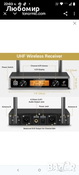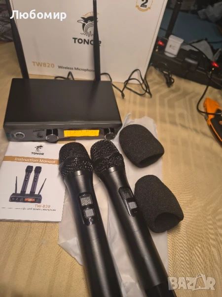 Безжична микрофонна система TONOR, професионални метални безжични караоке микрофони, ръчен динамичен микрофонен комплект с приемник за парти, срещи, KTV, църква, DJ, сватби, пеене, 61 м, TW820 черен.Ясно и безупречно качество на звука: С професионална кардиоидна динамична капсула, системата може да възпроизвежда по-отличен, ясен, чист и плътен звук и да елиминира фоновия шум и виенето. Идеална за караоке, домашно KTV, големи партита, DJ, сватби, класове.