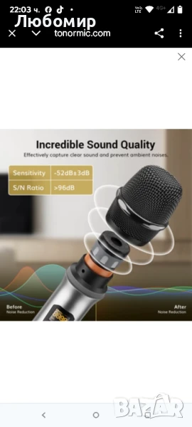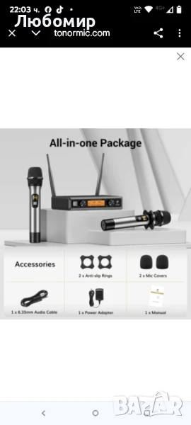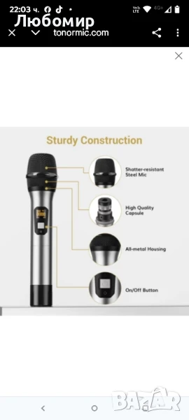 Безжична микрофонна система TONOR, професионални метални безжични караоке микрофони, ръчен