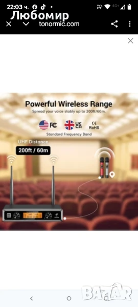Подобрена стабилност на сигнала: С 15 регулируеми честоти на UHF микрофон и дълъг обхват на предаване (60 м) на открито, което гарантира, че до 15 комплекта могат да се използват едновременно, без да се притеснявате за смущения.