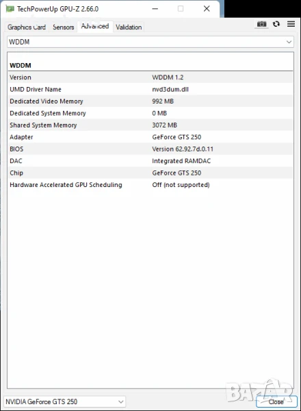 Chipset/GPU Model: NVidia GeForce ENGTS250/G92GTS