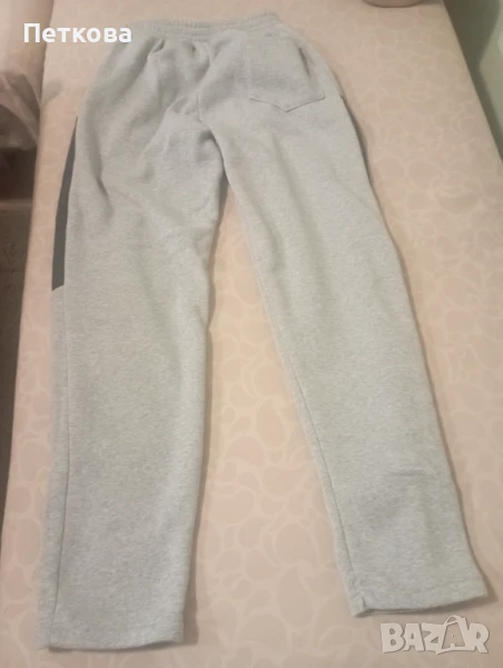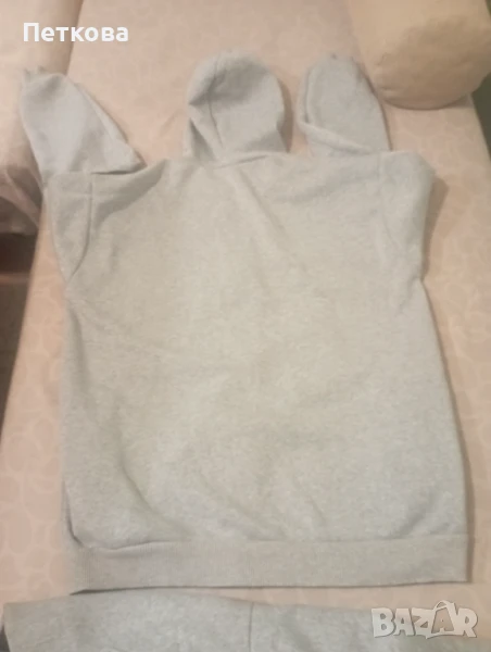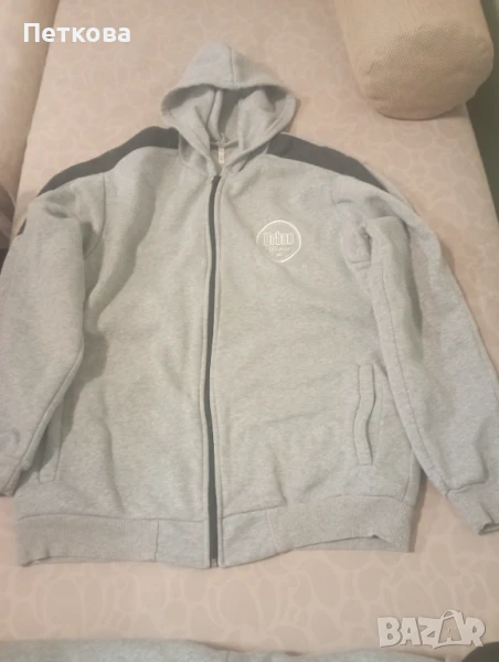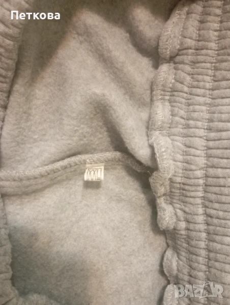 Много запазен мъжки ватиран спортен комплект от две части в сиво. Горнището е с качулка, цип и два джоба. Долнището също е с джобове . Леко умален модел. На етикета е XXL, но отговаря на размер L, XL. Идеален за по-хладно време.