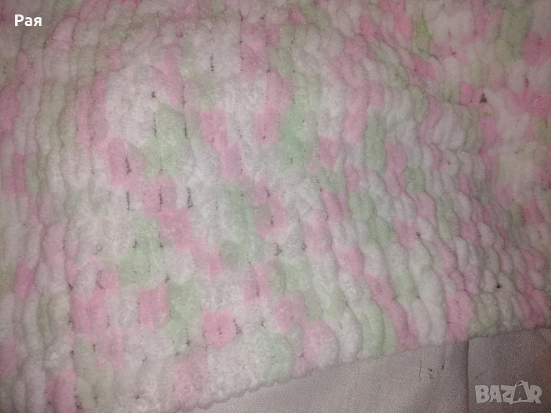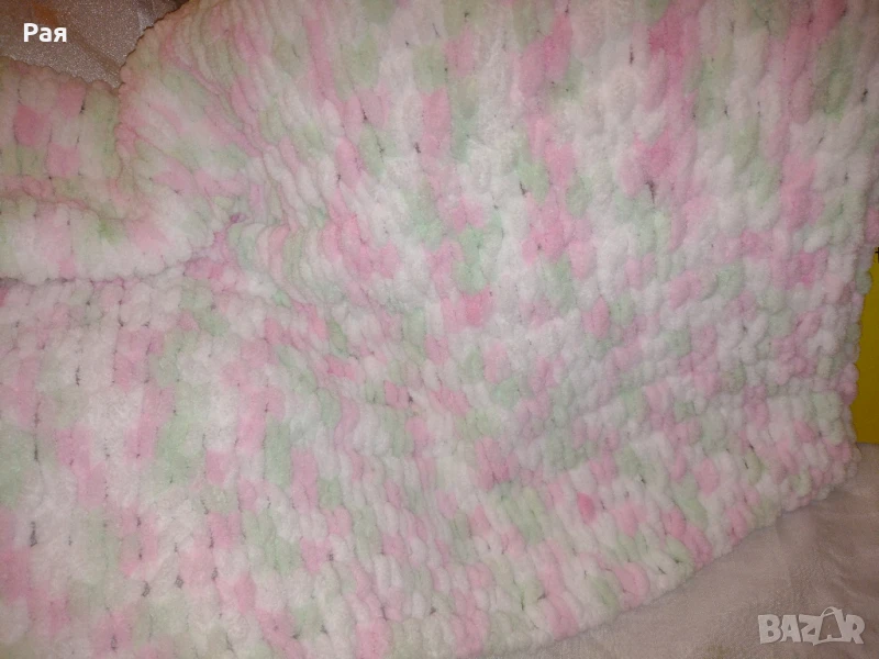 Бебешко одеалце с борд, плетено на пръсти с прежда Alize Puffy размери 55 на 133 см цена 50 лв