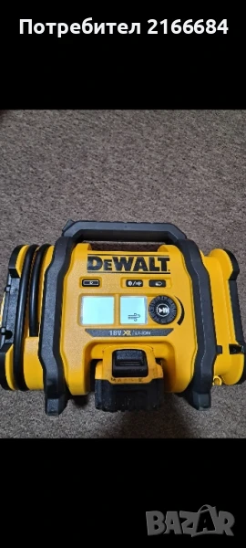 Компресор Dewalt DCC 018-18V-2019година,компресорът се включва но не работи,при слагане на батерията дисплея светва но не може да се избере опция надуване на гуми,при включване на компресора в гумата изписва грешка- Er 5.Визуално е като нов,липсва големия маркуч за надуване на обемни неща