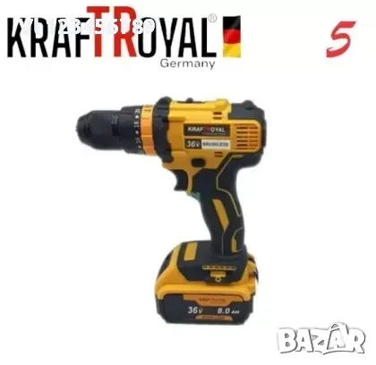 5в1 универсален комплект KraftRoyal с 5 приставки: винтоверт, гайковерт-импакт, перфоратор,водоструй