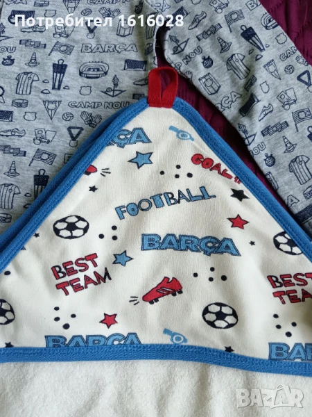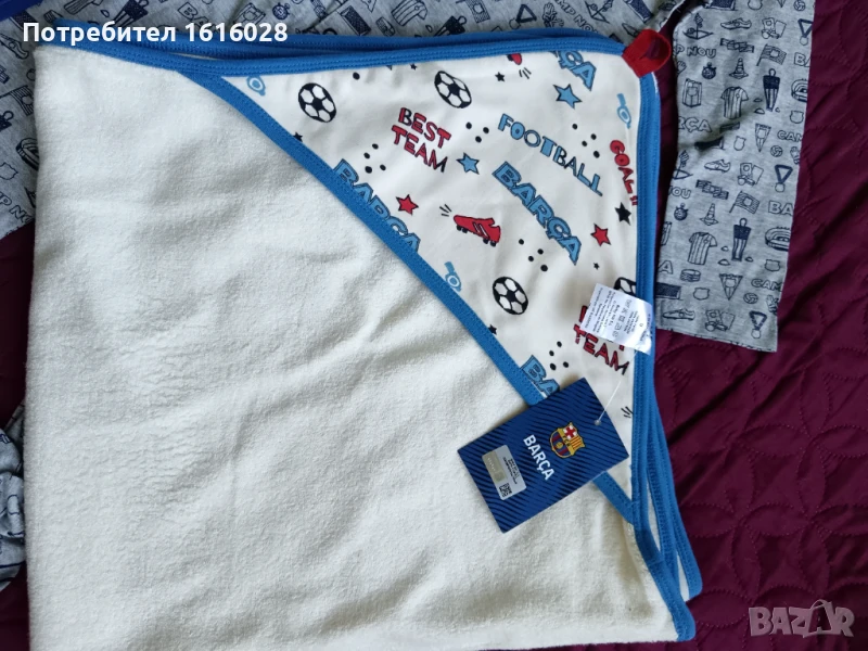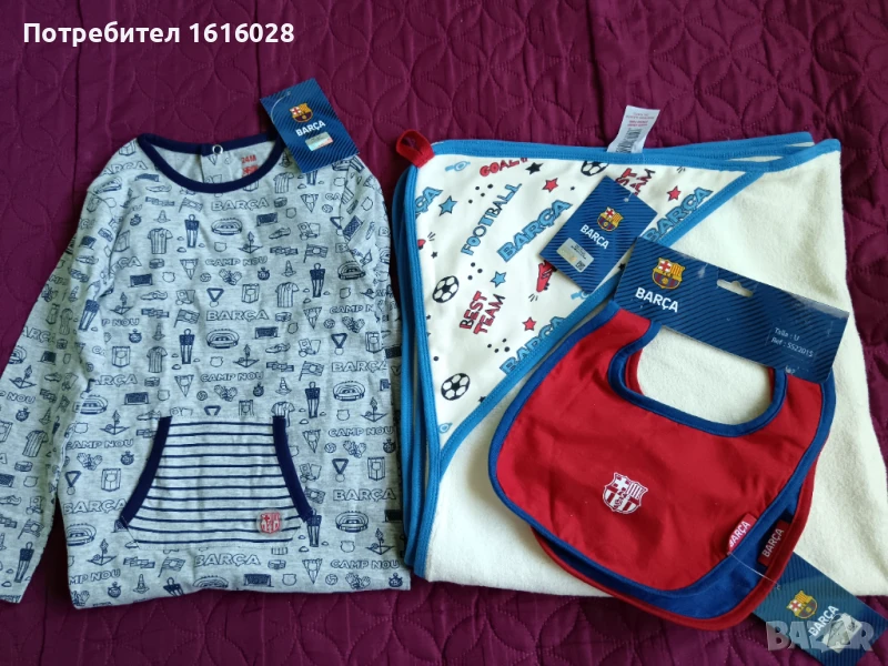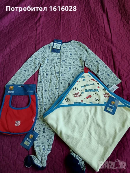 Хавлиена кърпа и бебешки гащеризон на Барселона. → Обява 50669487
