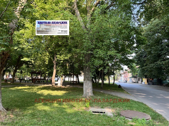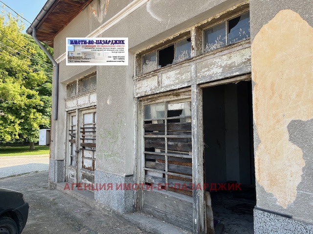 НОВА,ПО-НИСКА ЦЕНА!!!Имоти-БГ-Пазарджик продава промишлено помещение, което в зависимост от бизнеса може да се използва като магазин, козметика и фризьорство, офис. Намира се на парка до гарата. За ремонт е, в този вид се продава за да може купувачът да си го отремонтира според желанията. Партерна част-една голяма зала около 35кв.м, на бетонова замазка. Посредством бетонови стълби се слиза в също толкова голяма зала-склад със санитарен възел и сухо помещение.Имотът притежава 1/3 идеална част от дворното место,цялото от 1116кв.м, върху което е построена сградата от три магазина.Сградата е била аптека в миналото.Гредоред е.Бита сонда за вода в складовата част.С два входа-от улицата директен и към двора втори.Агенцията консултира, съдейства при кредитиране и изготвяне на пазарни оценки безплатно. Клиентите на агенцията са на индивидуално договаряне с банката-кредитор.
