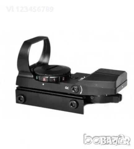 Класически, холограмен бързомерец/т.е. без видим лъч/ с червена или зелена точка в два варианта - с външен диаметър 30 мм или с диаметър 40 мм. Брандиран е BUSHNEL, произход -Далечен Изток. Монтаж с моноблок подходящ за шини - 11-14мм и 19-22мм.