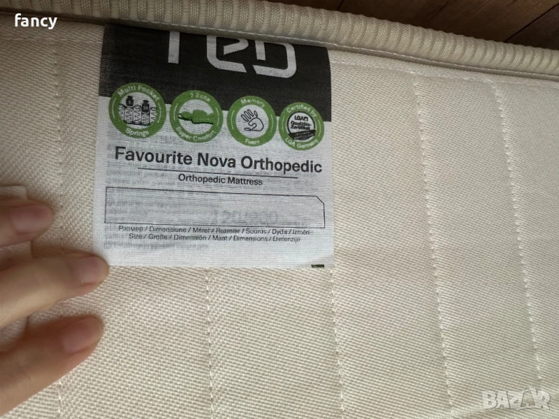 Това е първият матрак, който е създаден с интелигентната технология i-Springs Super Comfort за прецизна поддръжка и с обособени 7 зони на комфорт. Повече от 400 малки мулти покет пружинки реагират на всяко движение, без да го прехвърлят към съседните точки. Компактна високоеластична пяна осигурява максимално удобство и подпомага ортопедичния ефект на този уникален матрак, а луксозната прошивка със слой мемори пяна и мек антистатичен текстил TED Balance осигуряват допълнителен комфорт и мекота на цялото тяло. Отличната вентилация на Favourite Nova Orthopedic има способността да предпазва от развитие на микроорганизми и осигурява чиста повърхност с оптимална температура за тялото по време на сън.