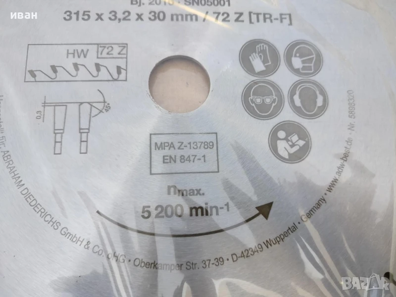 разкъсването. Цена за комплект -89лв.Нови внос Германия! режещ диск за настолни