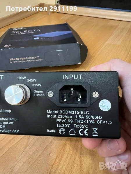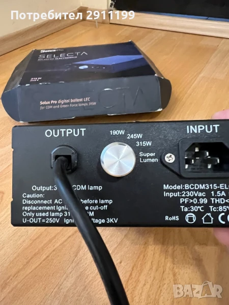 lamps 315W / Selecta Super Bright CDM Digital Ballast 315W Нов регулируем баласт / дросел за CDM и Green Force лампи . Комплект със захранващ кабел.