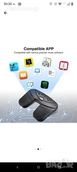 Педал за превключване на ноти, Bluetooth устройство с 5 режима на работа, преносимо с акумулаторна