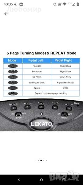 5 начина за завъртане и повторение на бутона: странична стрелка нагоре и надолу, наляво и надясно, стрелка нагоре и надолу, ляв и десен бутон на мишката, интервал и клавиш Enter. Този страничен педал за обръщане поддържа непрекъснато обръщане на страници.
