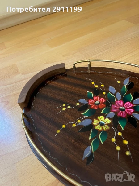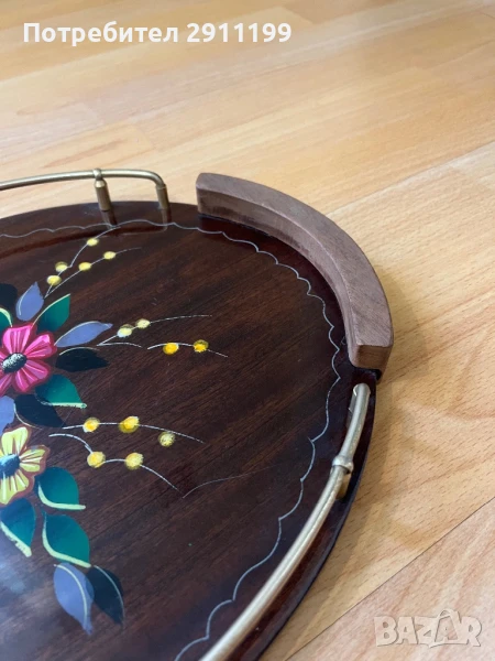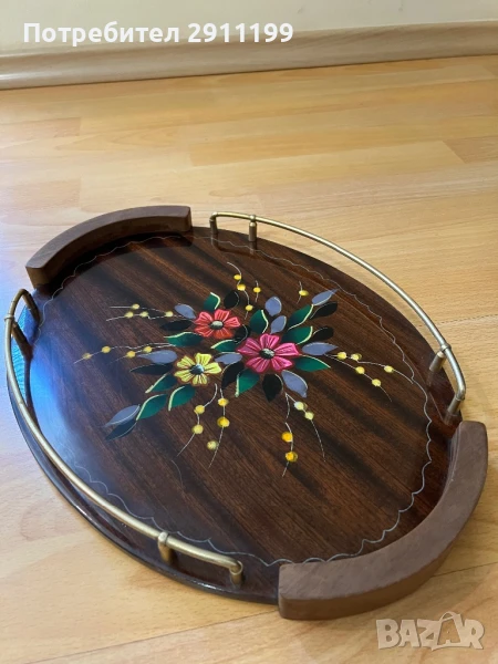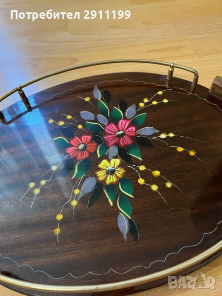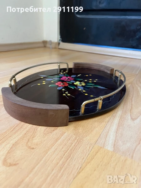 поднос. Изработен от дърво и метал.