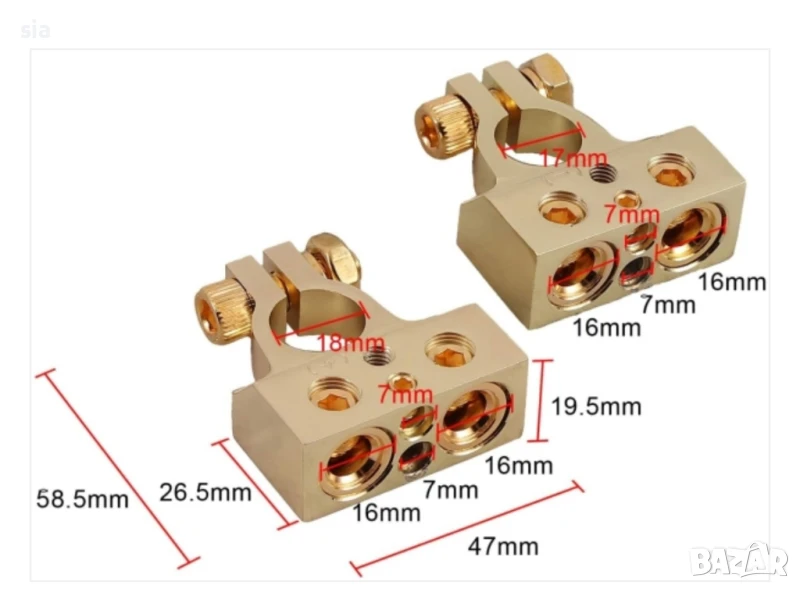 акумулатора: Клемите на автомобилния акумулатор са подходящи за свързване на автомобилен акумулатор. Лесно се модифицира окабеляването.Положителнa/отрицателнa клема: Положителен (18 мм) конектор на клемата на акумулатора. Отрицателен (17 мм) конектор на клемата на акумулатора. Универсално прилягане: Положителни и отрицателни клеми на акумулатора са подходящи за повечето модели акумулатори, лесна за подмяна.Супер издръжлива: Медно покритие, силна електрическа проводимост, супер устойчивост на корозия, намаляване на загубите при предаване на ток.Сигурна връзка: Конекторите се закрепват с винт и осигуряват стегната и сигурна връзка. Лесен за инсталиране.Оптимална производителност: Създаден за работа с кабели с голям сечение, клемата на батерията с нулев сечение осигурява ефективно захранване, което я прави идеална за високопроизводителни приложения, като например автомобилни аудио системи.