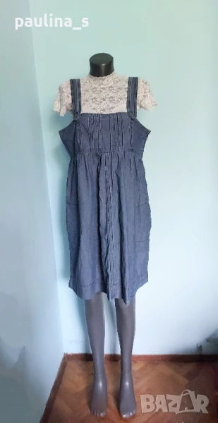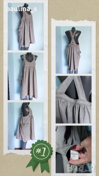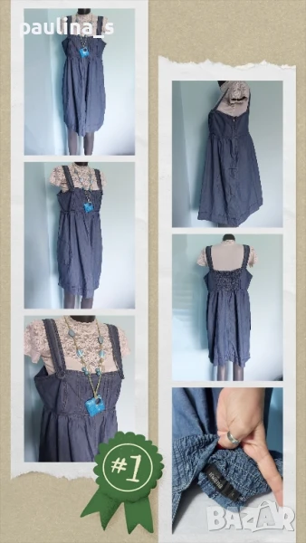 1️⃣ . L / 2XL - "Monki". Цената е крайна 39,99лв / 20 евро. Сив дънков сукман с избелващ ефект, по етикет е малък размер, но е уголемен. Джобовете не са обемни, много оригинална декорация, платката е под бюста, за ниски жени. Материята е мек и летен Деним, не е еластична. Поради модела, може да се носи от няколко размера. Не е нов, но е без дефекти. Герданът не влиза в цената.
